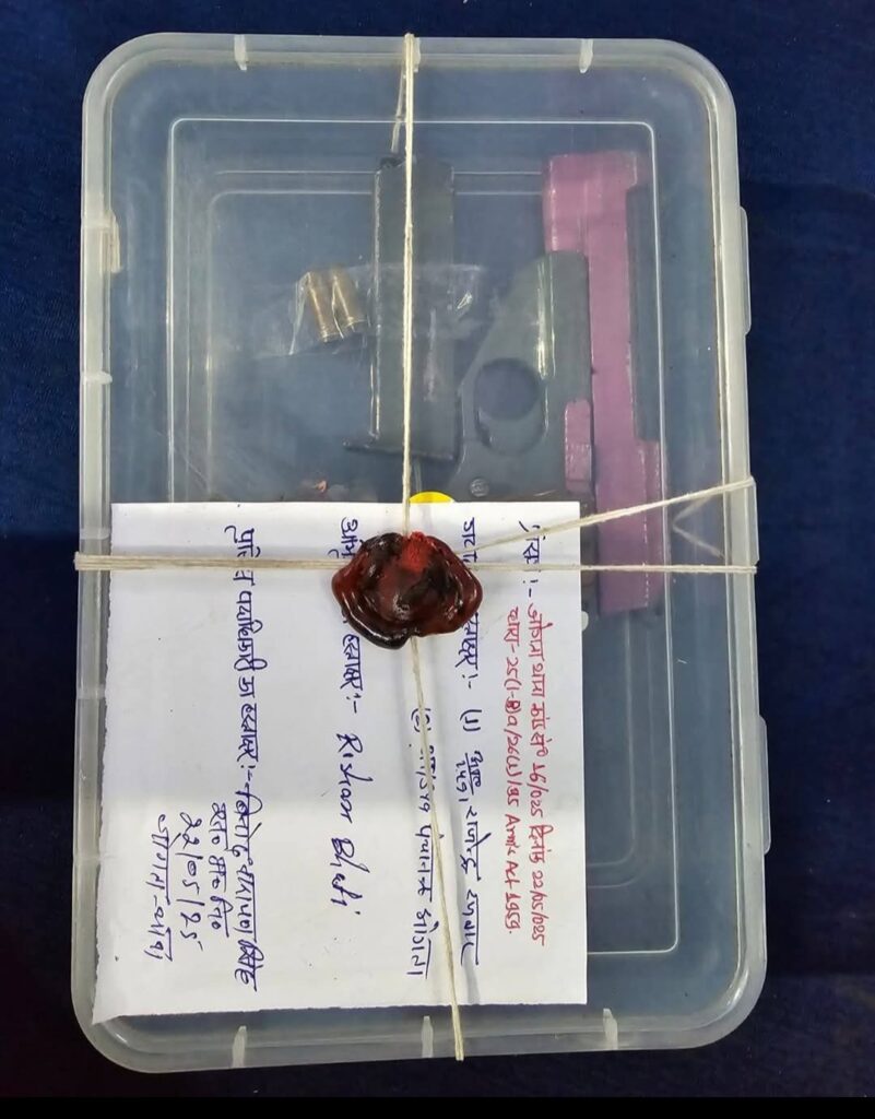 1. कारतूस – जिन्दा 2 पीस जिसके पेंदे में KF 7.65 लिखा हुआ